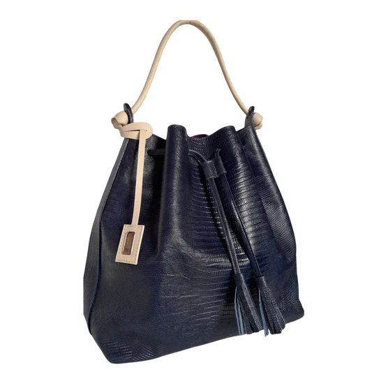 Bolso en cuero para mujer Jade Reptil azul oscuro