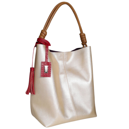 Bolso en cuero para mujer Hannah Oro y Cebra miel