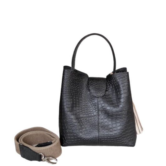 Bolso en cuero para mujer Clara Reptil negro con talco